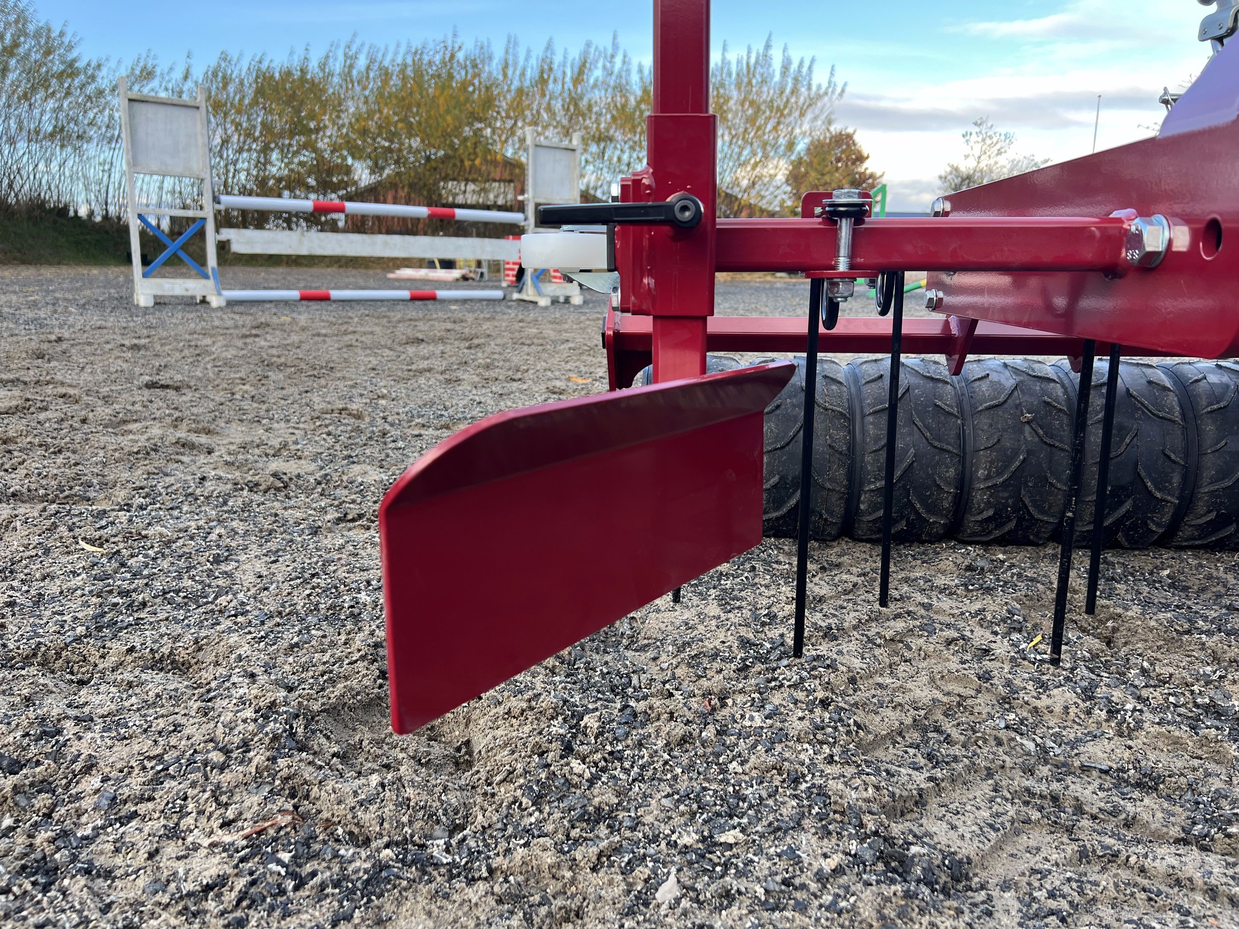 Ridebaneplaneren er konstrueret med et klart formål: at være ekstremt simpel at betjene, uanset erfaring. Konstruktionen sikrer, at der flyttes så lidt materiale rundt som muligt. Det betyder, at ridebanen ikke bliver skæv over tid, men står med en jævn, ensartet og flot overflade efter hver kørsel.